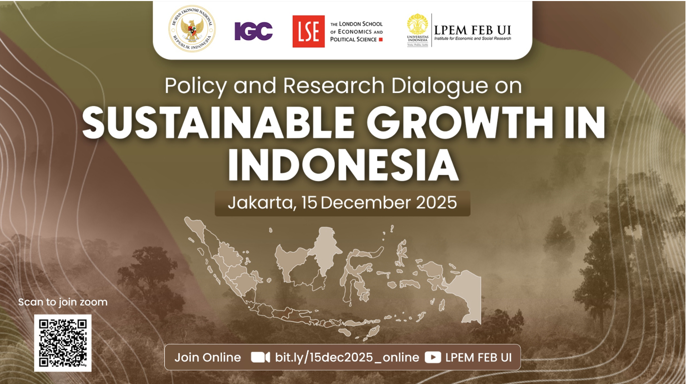 Join the National Economic Council (DEN), in collaboration with the International Growth Centre (IGC) and the Institute for Economic and Social Research at the University of Indonesia (LPEM UI), for an interactive, full-day workshop exploring how high-integrity carbon pricing, digital social protection, and innovation-led industrial policy can support Indonesia’s sustainable development agenda.