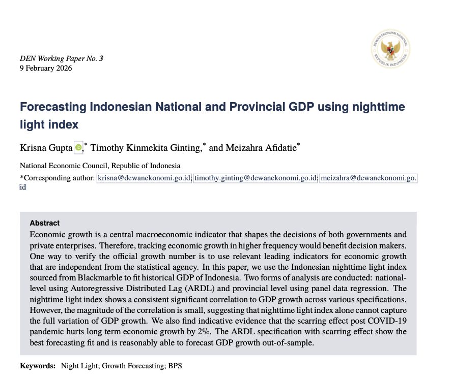 One approach to validating official GDP figures is to utilize independent leading indicators that are not produced by the national statistical agency. In this paper, we employ the Indonesian Nighttime Light Index, sourced from Black Marble, to estimate and fit Indonesia’s historical GDP data.